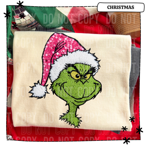 Green Faux Pink Sequin Hat